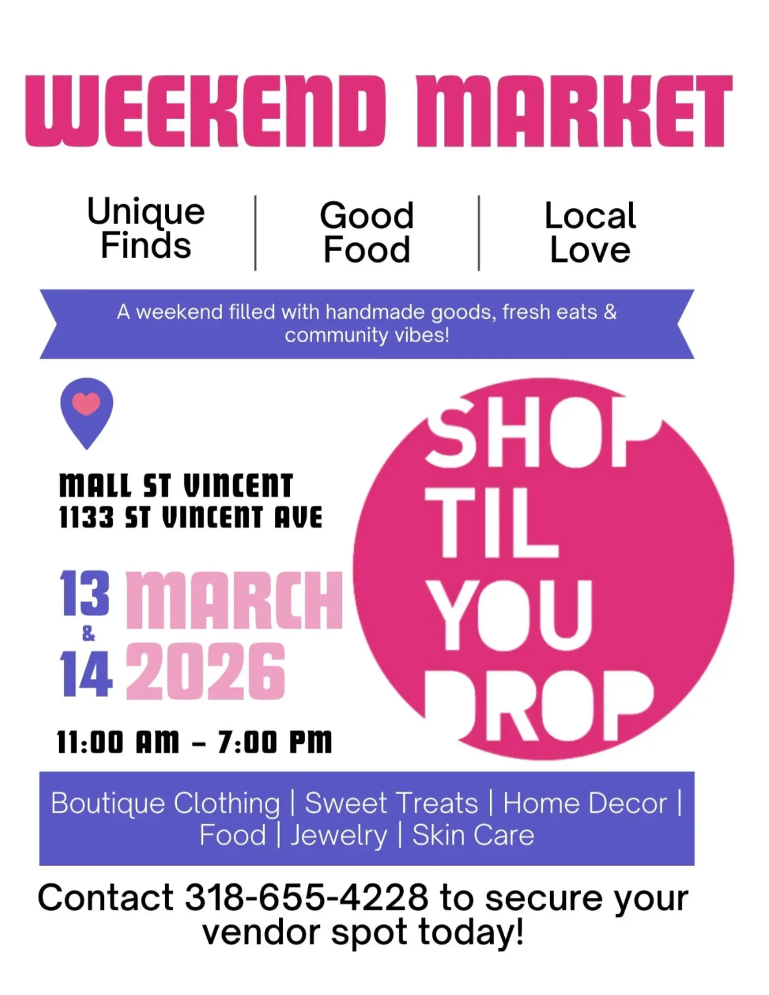 Get ready for a full weekend of shopping, snacking, and supporting amazing vendors at Mall St. Vincent! 🎉